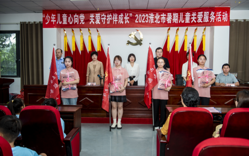 为深入学习宣传贯彻党的二十大精神,贯彻落实全国妇联关于2023暑期儿童关爱服务活动的工作部署,进一步聚合力量,汇集资源,做好儿童成长的引路人、守护人、筑梦人,7月20日,由市妇联主办,烈山区妇联和烈山公安分局承办的“少年儿童心向党 关爱守护伴成长”淮北市2023暑期儿童关爱服务活动启动仪式在烈山区古饶镇谷山村村部举行。市妇联党组书记、主席李广莉出席并宣布活动启动。仪式由市妇联党组成员、副主席荣丽主持,烈山区委副书记李响致辞。烈山公安分局、古饶镇相关负责人出席活动,各县区妇联主席,古饶镇、村妇联主席,春蕾女大学生志愿者代表,儿童、家长代表等100余人参加活动。