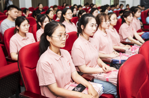 春蕾女大学生志愿者代表孙天爱发出暑期儿童关爱服务倡议,表示自己作为春蕾成才助学行动的受益者,将以春蕾女大学生志愿者的身份积极参与暑期儿童关爱服务活动,把爱和温暖传递下去,也号召大家一起行动起来,帮助广大少年儿童度过一个安全、健康、快乐的假期。与会领导为春蕾女大学生志愿服务队授旗。