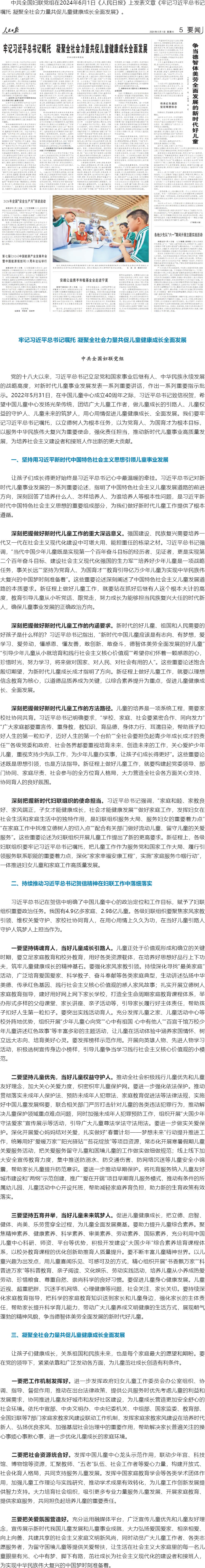 《人民日报》刊发全国妇联党组署名文章:牢记习近平总书记嘱托 凝聚全社会力量共促儿童健康成长全面发展