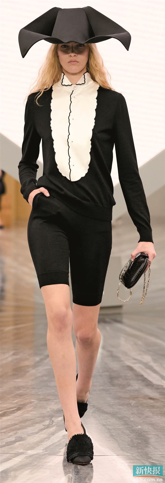 本季领结还有一个特点是不再局限于颈部,有将小型领结点缀在衬衫门襟的设计巧思,也有将领结元素与裙摆结合的解构主义创作,以此诠释新古典主义的浪漫精髓。