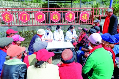 10月28日,医生在云南省大理白族自治州南涧彝族自治县公郎镇自强村麦地平幸福小院为老人义诊。新华社发(适志宏/摄)